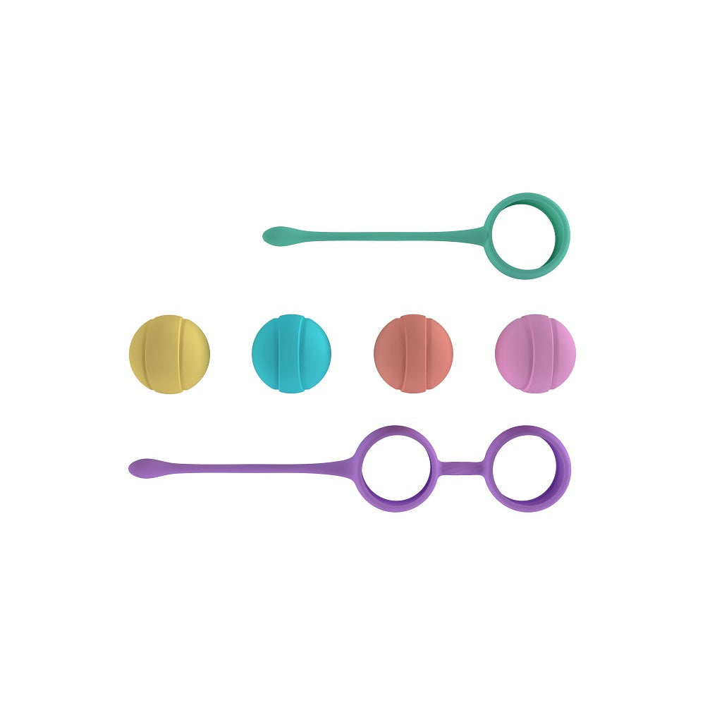 This set of high-quality silicone Chinese balls is designed for safe and effective pelvic floor muscle exercise. The kit includes four progressively weighted balls (18g, 30g, 40g, and 55g), each with a distinct colour for easy identification and progression.